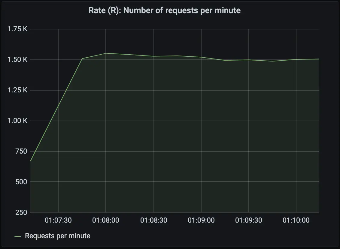 Figure 1 shows that the Node.js app was handling ~1,500 requests per minute.