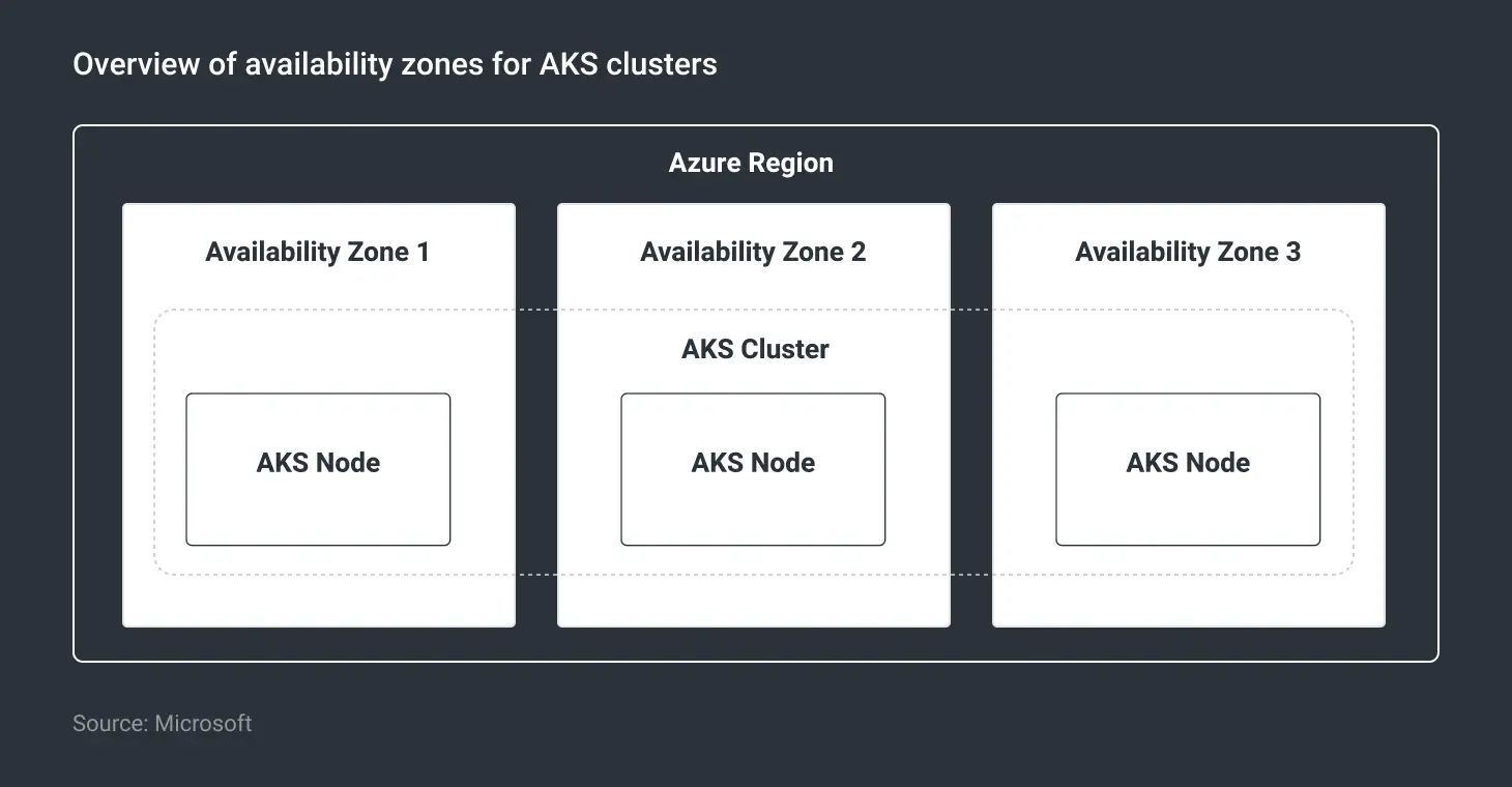 AKS clusters can also be deployed in availability zones, in which the nodes are deployed across different zones in a region. In case of a data center failure, the workloads deployed in the cluster would continue to run from nodes in a different zone, thereby protecting them from such incidents.